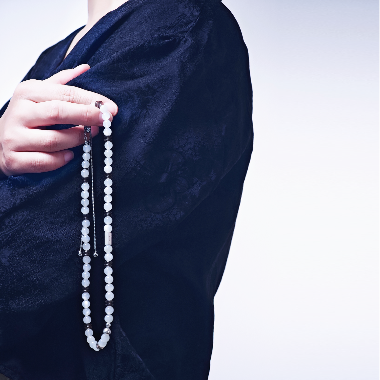 The moonstone features a gentle, smooth texture, with its flowing lunar sheen shimmering like soft light. Paired with the grounding smoky quartz spacer beads, it balances energy harmoniously. Moonstone awakens your keen intuition, while smoky quartz protects and stabilizes your energy field. Together, these stones empower you to seize opportunities proactively.This necklace is an original design, crafted by hand.
