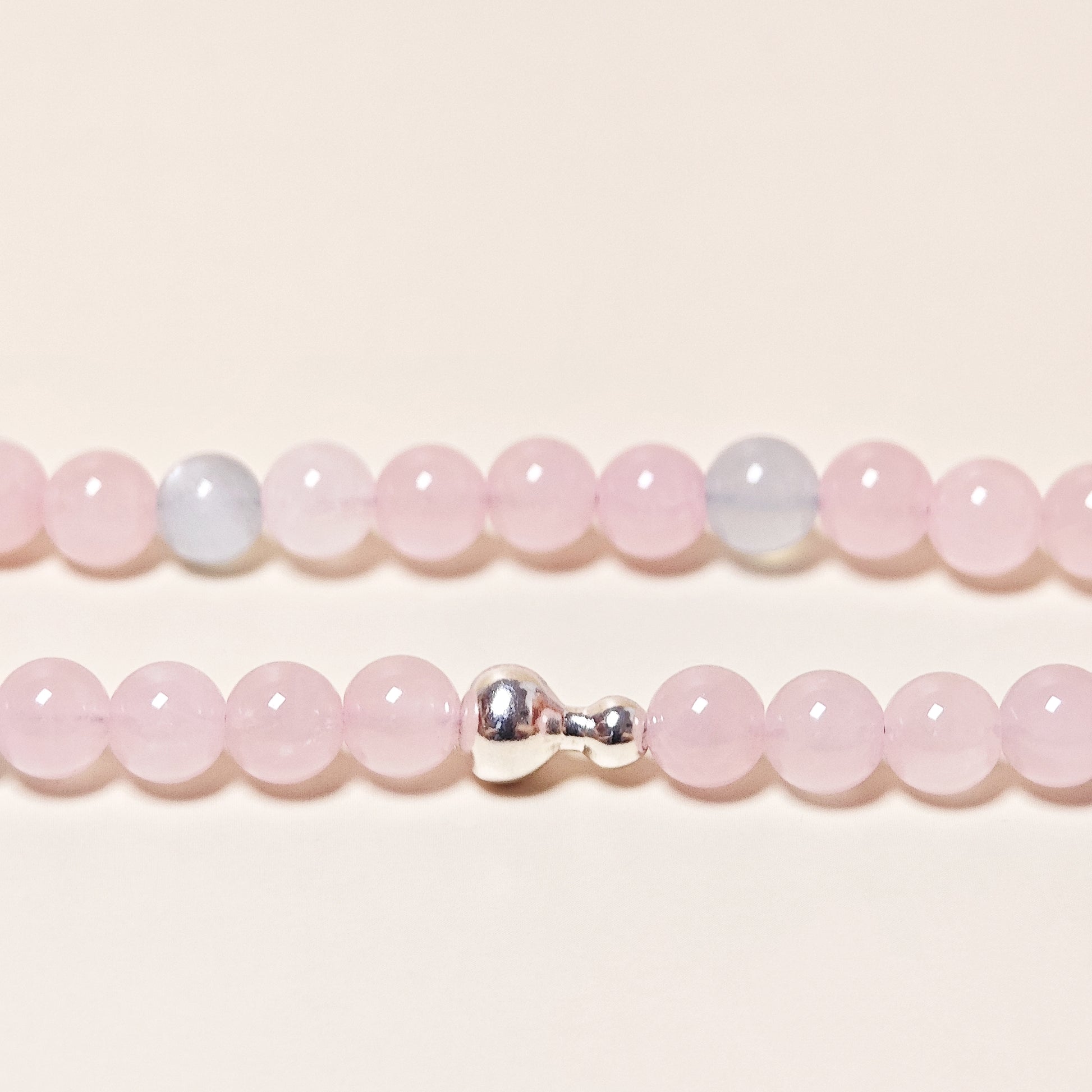 Our carefully selected Madagascar Rose Quartz boasts a vibrant hue, as vivid as blooming tropical roses. Paired with the clear sky-blue chalcedony, it exudes a gentle and sweet charm, creating a harmonious resonance of dual energies. This lively macaron color palette encourages you to bravely express your sincere emotions and embrace those thrilling moments of connection.This necklace is our original design, crafted by hand.